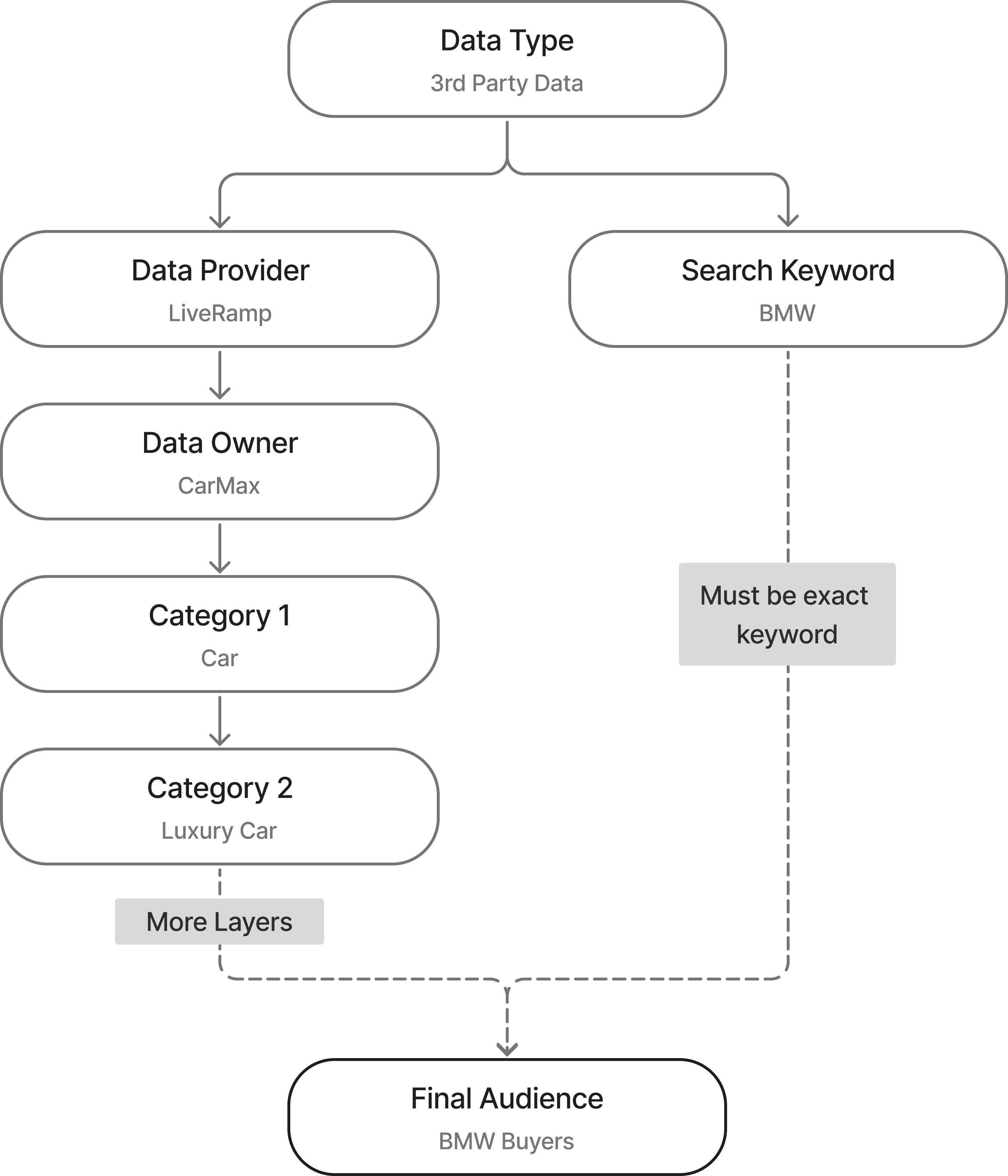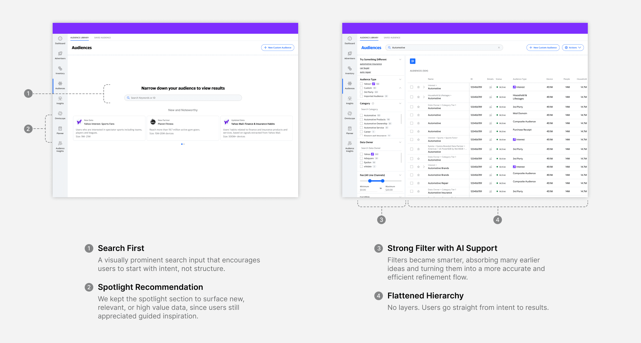 User feedback consistently showed that finding the right audience on our platform was frustrating and inefficient. The root cause was a combination of complex data structure and an outdated search experience. As our data offering expanded, the problem became more severe instead of better.