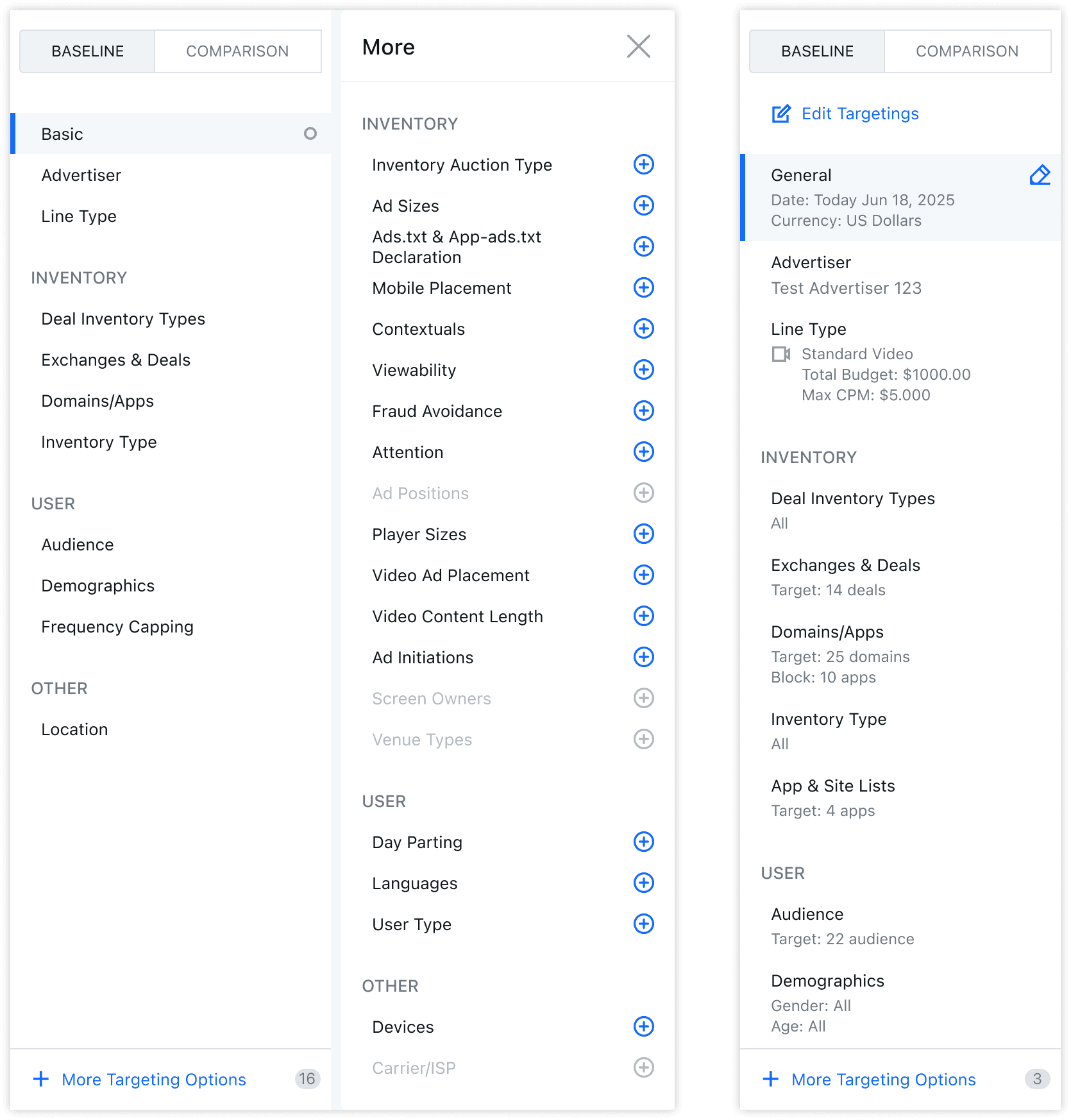 Reduced default targeting options from 35 to 10, cutting interface complexity by ~72% during initial setup